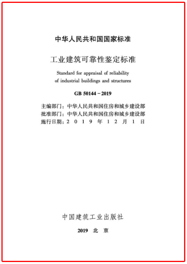 日前,由开云游戏主编的国家标准《工业建筑可靠性鉴定标准》GB50144-2019正式发布,将于2019年12月1日实施。