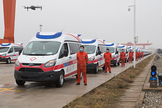 中铁特货从人力、物力、运力三个方面保障全国铁路汽车、冷链、大件物流的良好运行,力保铁路运输畅通无阻。图为中铁特货南昌分公司运输负压救护车。(受访者供图)