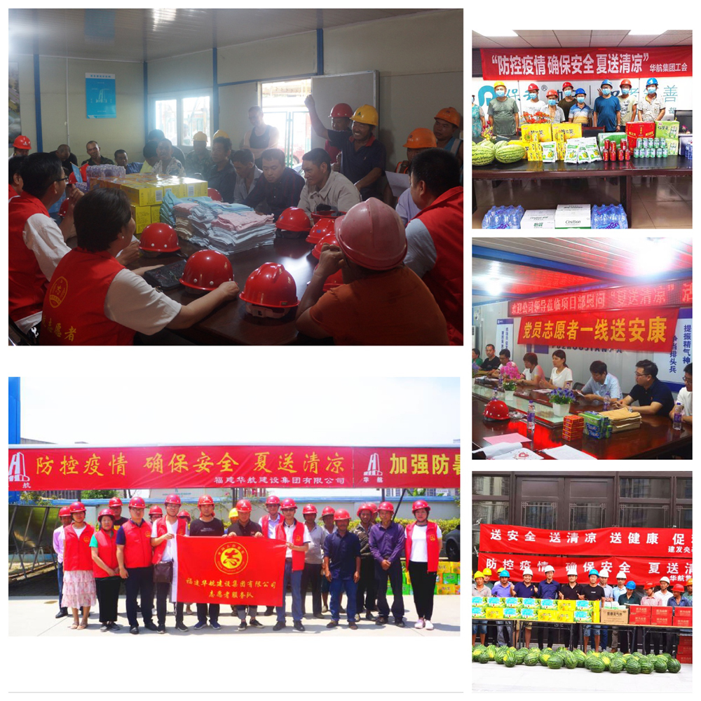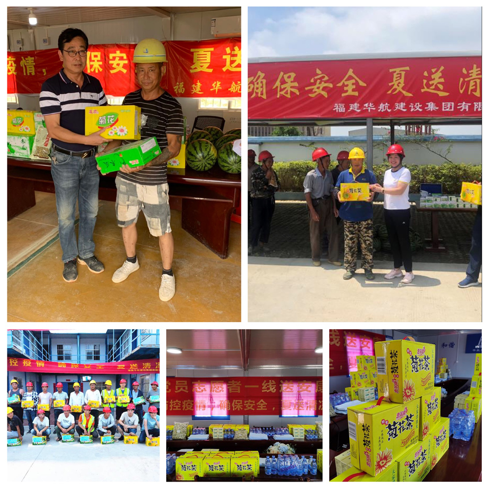 近日,为慰问高温季节仍坚守在施工一线的广大干部员工,华航集团开展“防控疫情,夏送清凉系列活动,组织相关部门人员和党员志愿者深入各地项目部,向一线工人广泛宣传“安康杯”竞赛活动主题及内容、普及安全生产知识和防暑防疫小常识,为他们送去各种清凉解暑物品。