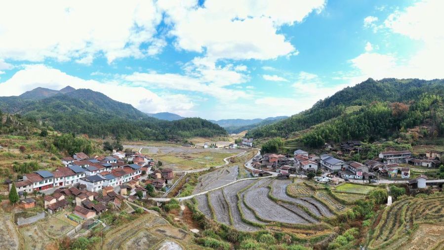 这是1119日拍摄的大山之中的岭下村(无人机照片)。新华社记者 姜克红 摄