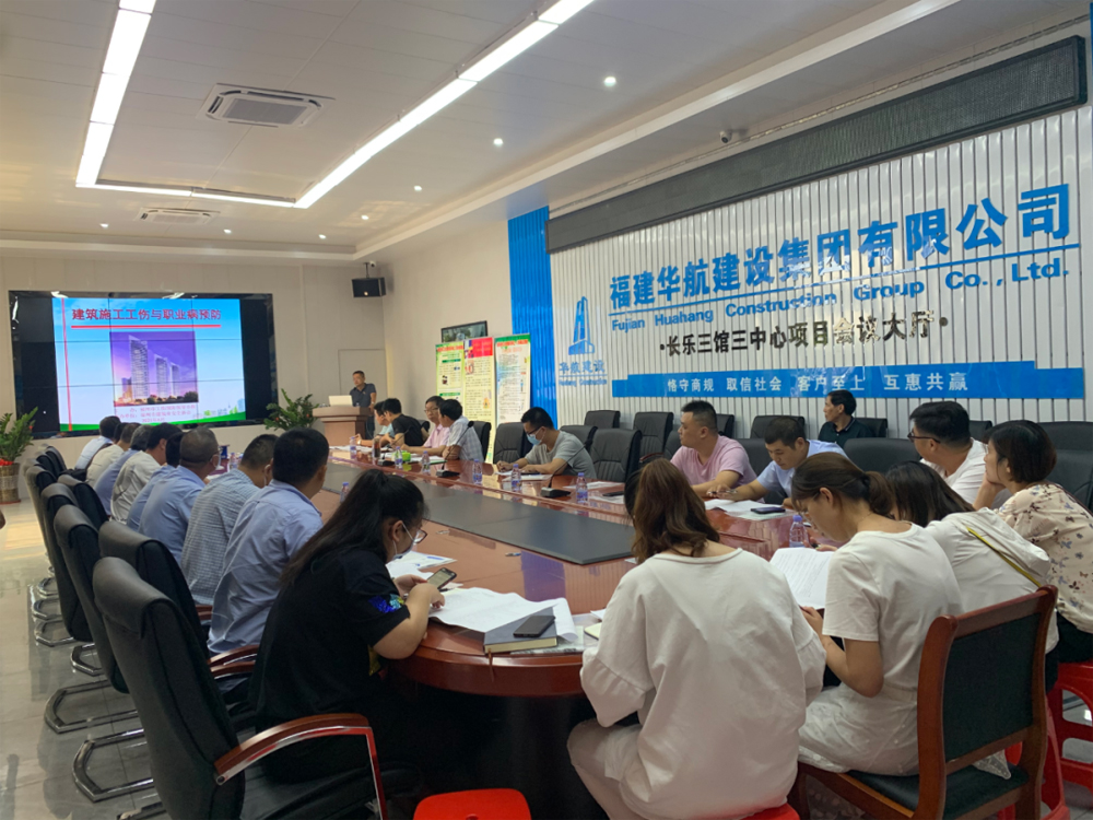 为响应《国务院安委会办公室应急管理部关于开展 2021 年全国“安全生产月” 和“安全生产万里行” 活动的通知》 及贯彻“落实安全责任,推动安全发展”的主题精神。6月11日下午,由福州市工伤预防领导小组主办,市建筑业安全协会承办的“建筑施工工伤与职业病预防宣传”第五期培训班在开云游戏长乐三馆三中心项目部举办。华航公司副总经理瞿生亮及企业机关和在建项目共计60余人参加了培训会。