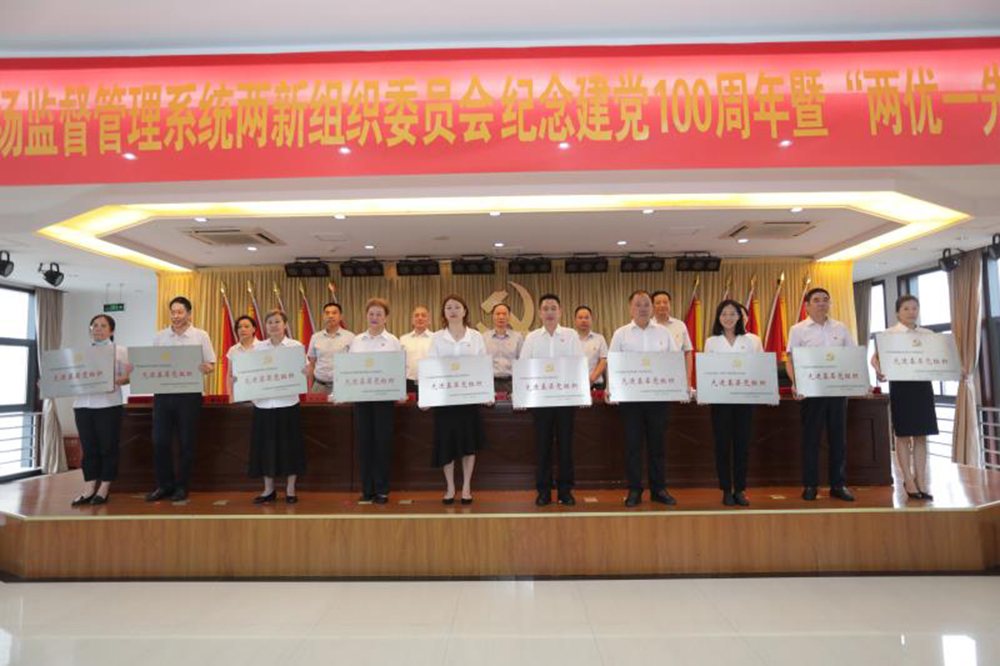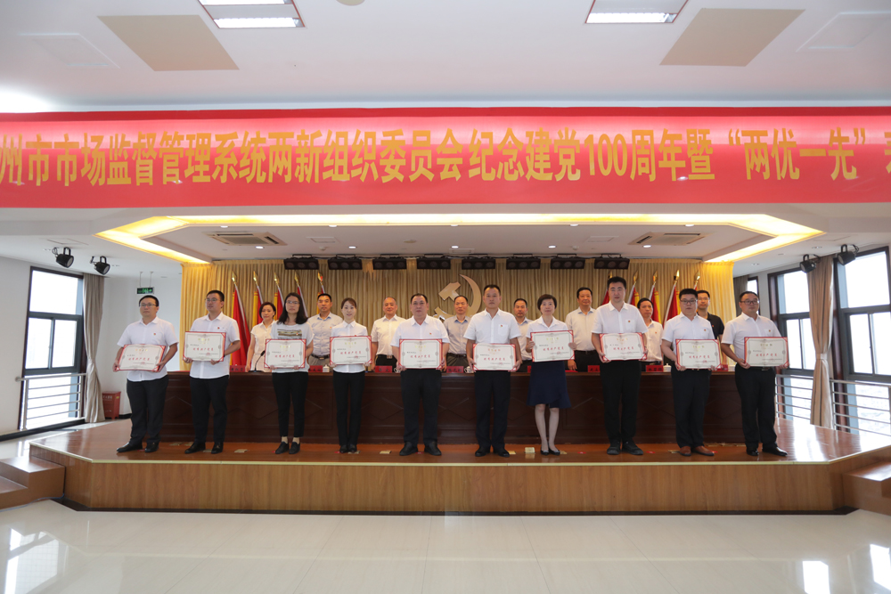 628日,福州市市场监督管理系统两新组织党委庆祝建党100周年暨“两优一先”表彰大会隆重召开。福建省市场监管局党组成员、总工程师、小微企业和个体经济组织党委书记张元榕,福州市委两新工委专职副书记陈有飞,福州市市场监管局党组成员、副局长、系统两新组织党委书记薛文等领导出席会议。