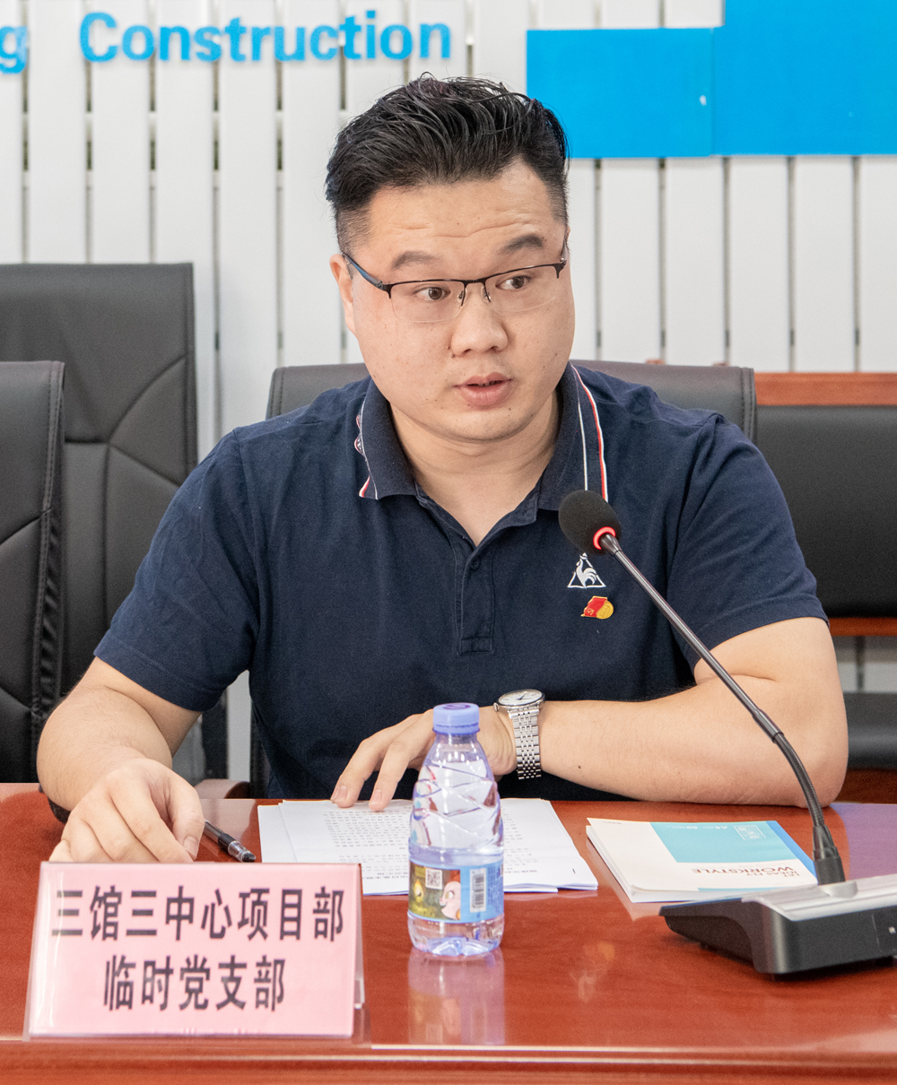 项目部临时党支部党员代表张克森同志向大家介绍了长乐区“三馆三中心”建设项目基本概况及落实保障农民工工资支付及相关关制度的情况。为切实做好农民工工资支付工作,自2020年9月开工起,华航建设集团全面贯彻落实党中央、省市区政府和各级住建主管部门关于保证农民工工资支付的决策部署,并结合集团公司实际情况,在“三馆三中心”项目通过推广党建引领与共建助力相结合、广泛宣传与保障落实相结合、全面推进与个案破解相结合、护薪行动与实施企业文化暖心工程相结合的工作方法,落实了“三馆三中心”项目农民工工资的常态化管理,使护薪行动取得了明显成效。